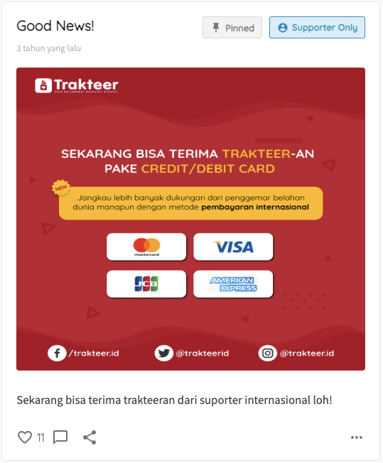 Tunjukkan karya terbaikmu langsung di Trakteer. Jadi bentuk apresiasi nyata untuk suporter yang sudah mendukung perjalanan kreatifmu.